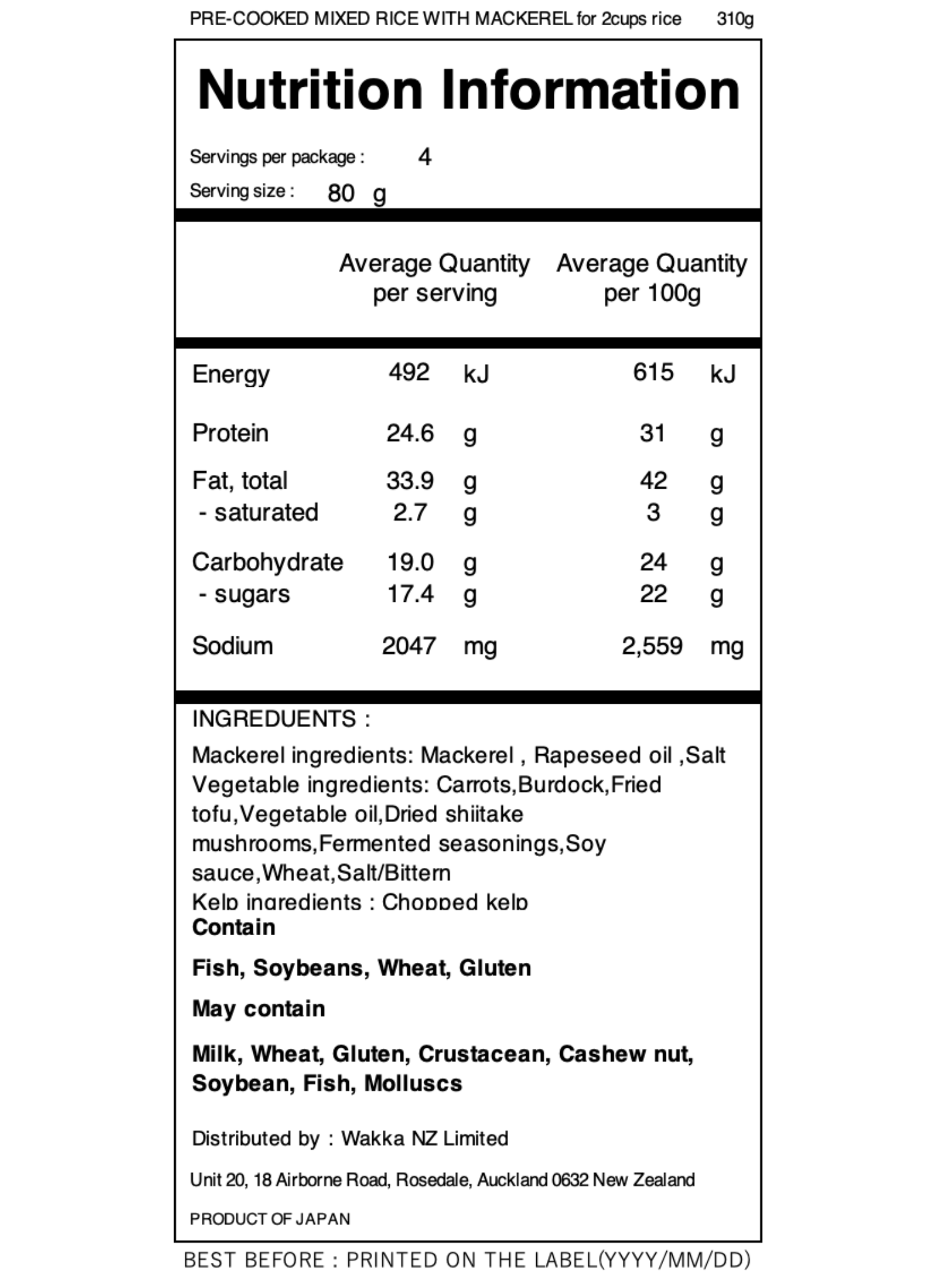 Contain Fish, Soybeans, Wheat, Gluten