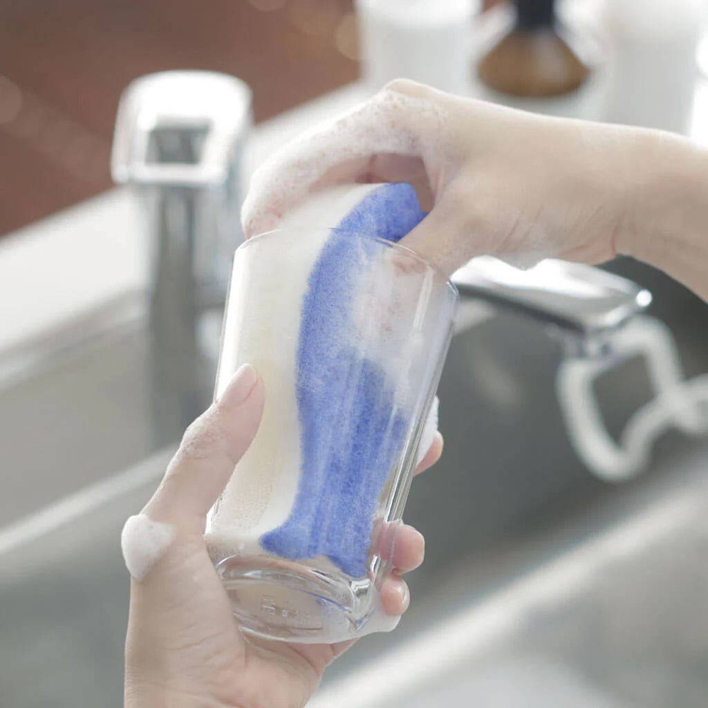 3層構造で泡立ち・泡持ちに優れているキッチンスポンジです。おさかなの形が手に馴染みます。しっぽの部分をくるっと回せば、コップの底にしっかり届きます。